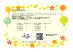令和8年度、下記の日程でベビーヨガを開催いたします。親子での触れ合いの時間にいかがでしょうか!