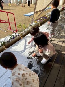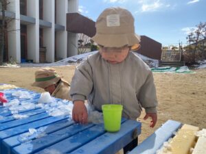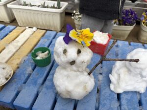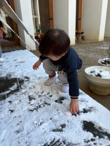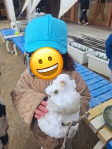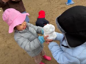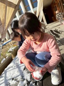 雪の冷たさを感じたり、お友達と雪合戦や、雪だるま作って楽しみました。
